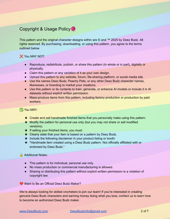 This listing is for the complete Peachy Pete crochet pattern. There is no physical item associated with this listing. But what you DO get is all the instructions you need to make your very own Peachy Pete pal! This 7 page PDF includes everything you need to know make this adorable Deez Budz companion! Including…